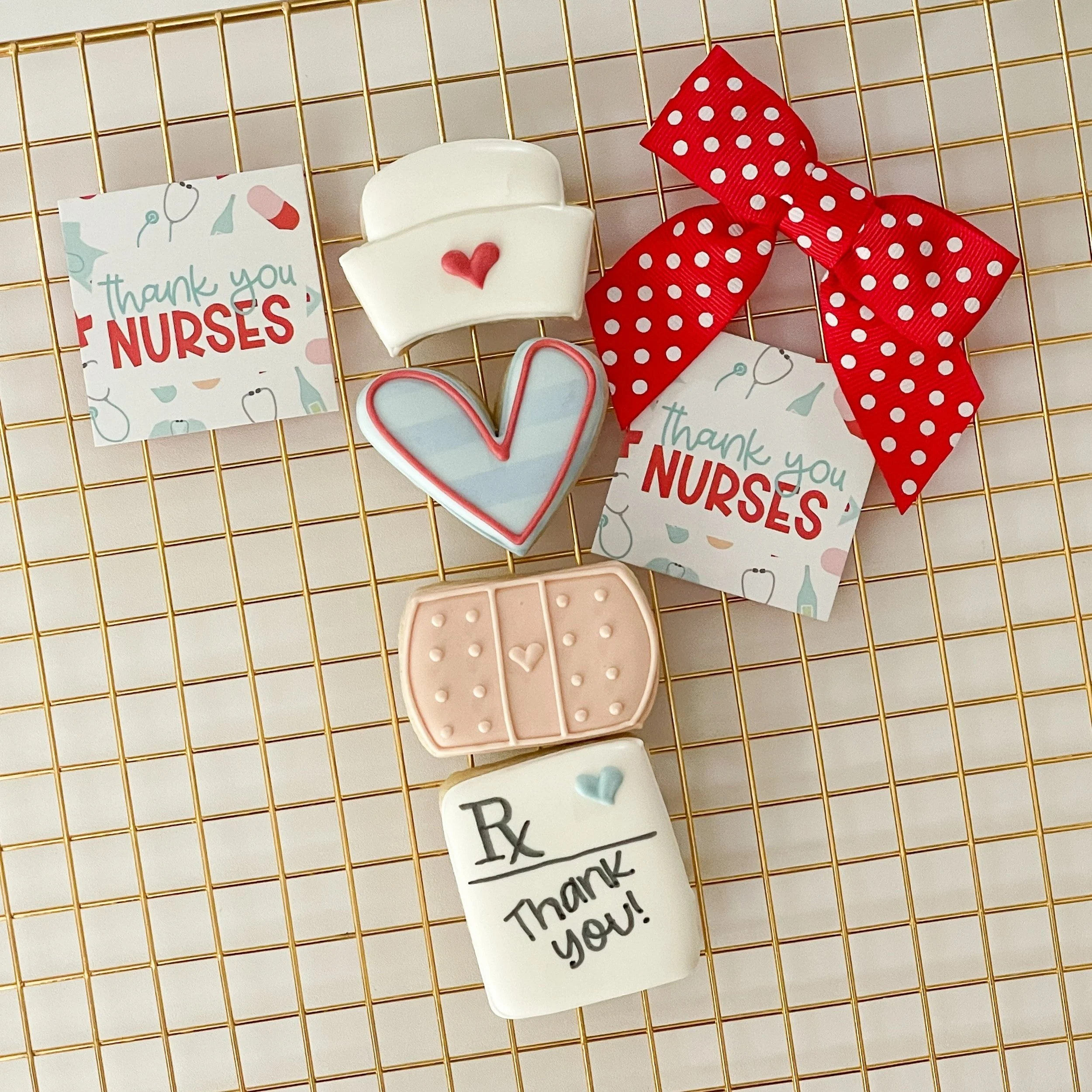 This set includes four mini vanilla bean sugar cookies. The cutest little set of cookies, perfect for your favorite nurse! Cookies will come heat sealed in a cellophane bag with tag and bow. Artificial dye free.